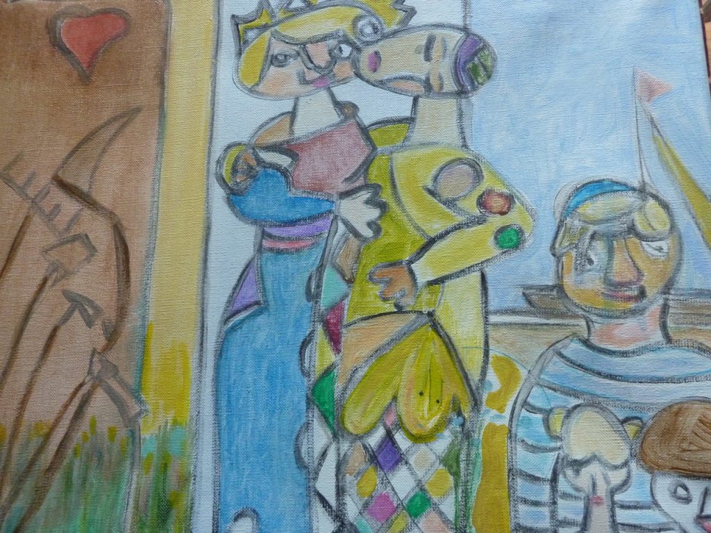 Face au silence de la toile, sans contraintes des bords et encore moins des couleurs, le noir et le blanc souvent exclus sauf dans le trait, Noël ouvre sa page de liberté créative.