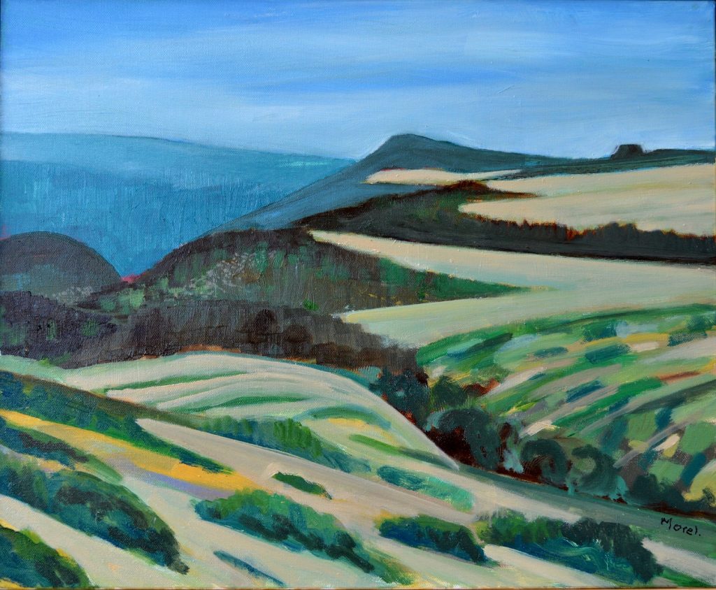 Ma peinture figurative est largement inspirée par les paysages auvergnats, avec une préférence pour les éclairages très contrastés, ciels d’orage sur la Limagne, champs de colza ou de tournesols. Forets, fleurs et reflets sur l’eau constituent d’ autres sources d’inspiration. Ma démarche consiste à rechercher la simplification en renforçant les lignes, les contrastes. Je ne cherche pas la véracité du rendu mais la synthèse d’une impression, d’une ambiance, d’un moment.